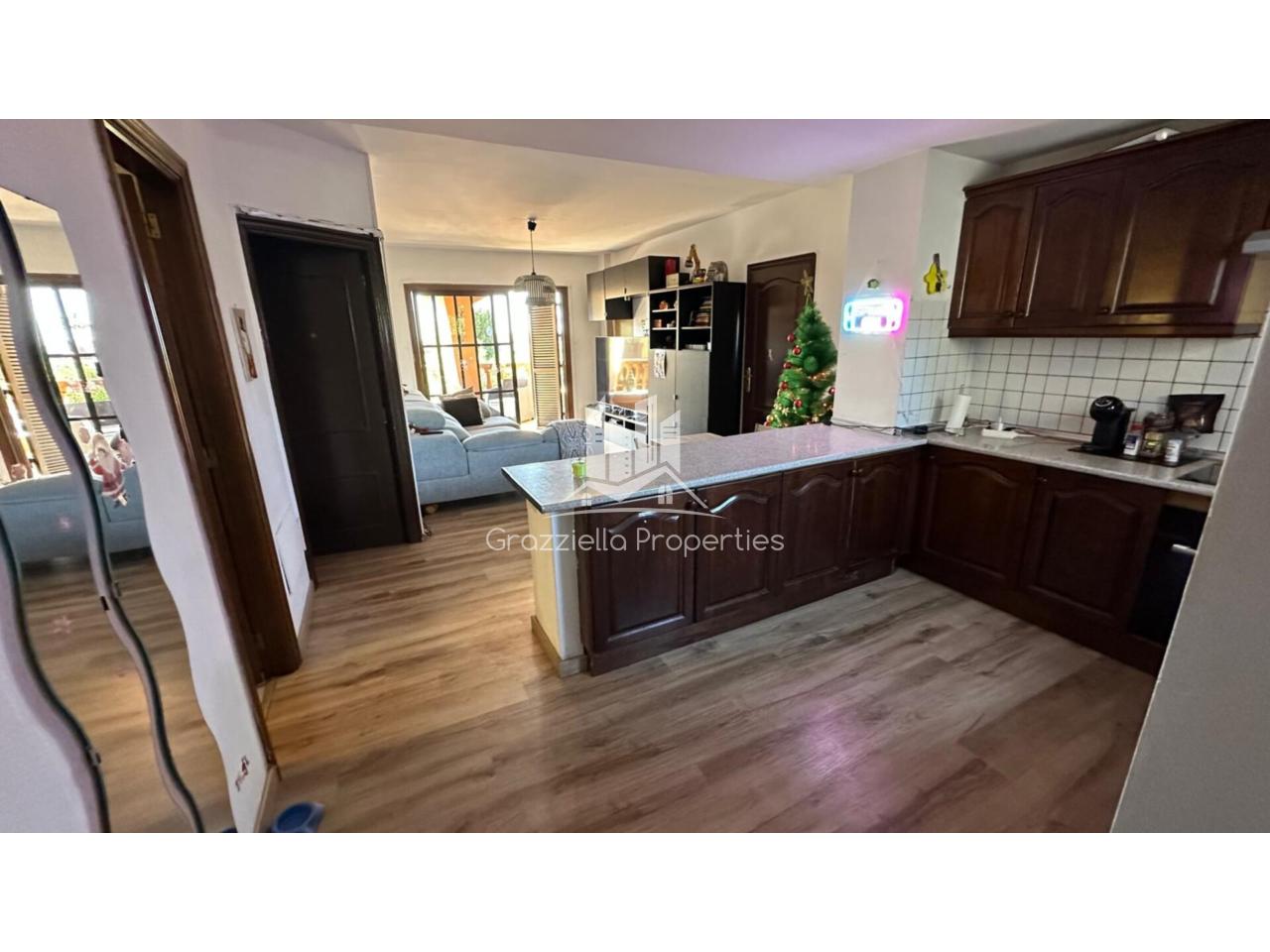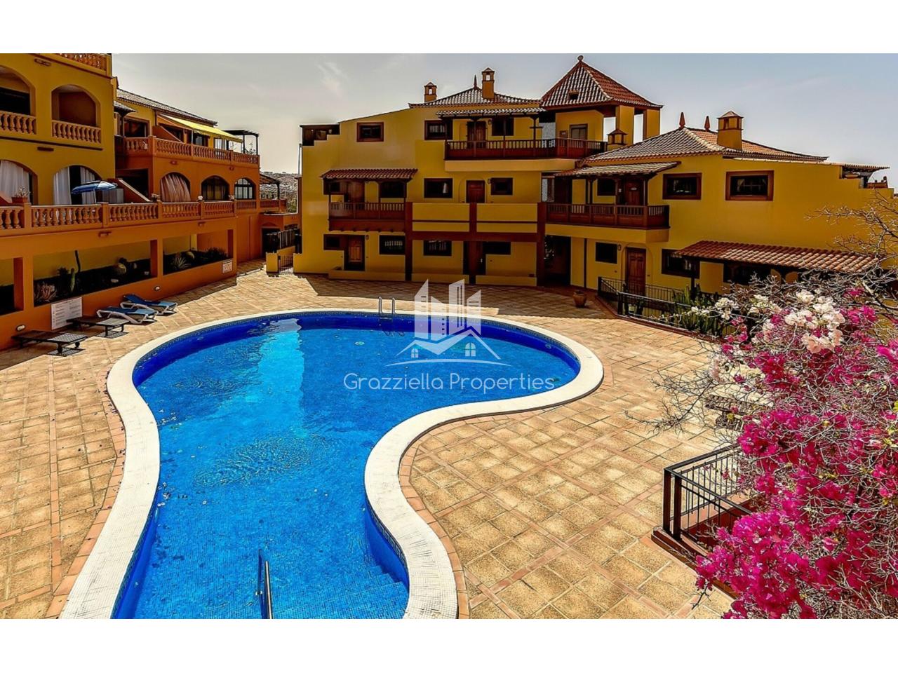 Moderna y acogedora vivienda en planta baja ubicada en Tenerife, con 75 m² interiores y una terraza de 16 m², ideal para disfrutar del aire libre. Dispone de 3 dormitorios, 1 baño, un amplio salón y cocina independiente. Además, cuenta con plaza de garaje incluida, acceso a una piscina comunitaria y gastos de comunidad de €103 mensuales. Su valor de tasación es de €595.000 (sin contar la plaza de garaje), pero actualmente está disponible por €525.000. El complejo dispone de ascensor, además de unas preciosas zonas verdes. Inmejorable ubicación.¡Una excelente oportunidad!