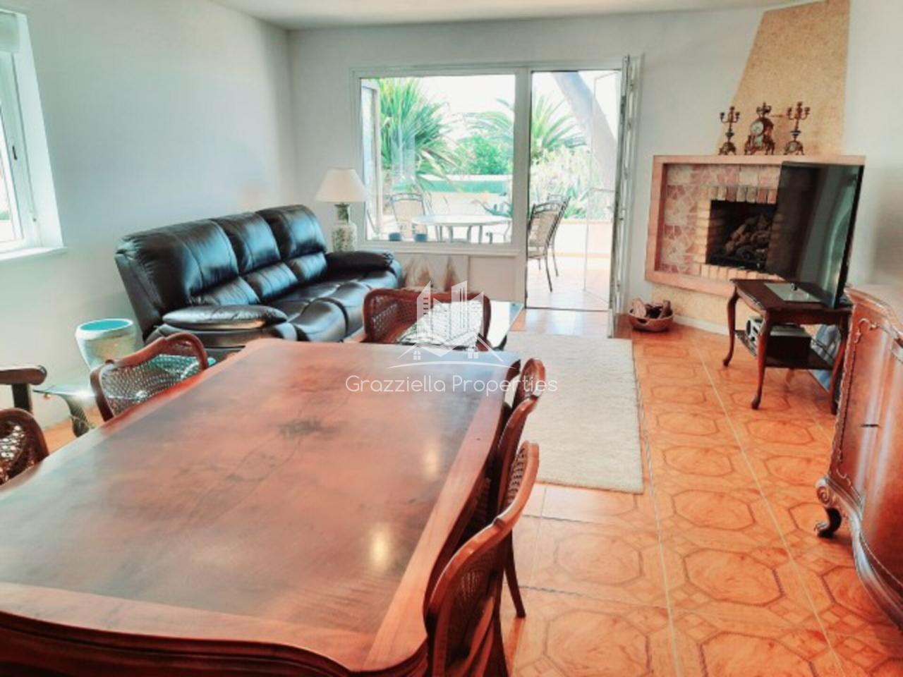 El salón, cálido y acogedor, se complementa con chimenea y aire acondicionado, creando un ambiente ideal durante todo el año.